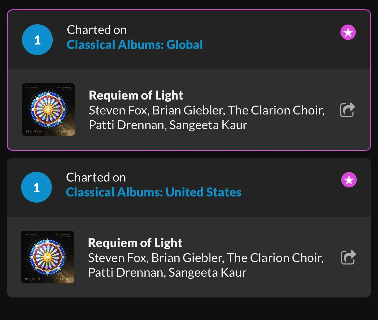 Charting #1 on iTunes Sep 24 Written By Emily Drennan Delighted to see we are charting #1 on iTunes Classical in the US and on the Global charts today! Emily Drennan